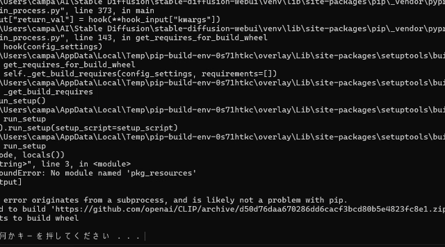 Stable DiffusionStable Diffusion Web UIがエラーで起動しない Stable Diffusion Web ULをインストールしようとしても、最後のCLIPのビルドでエラーが出てしまう。今回はうまく起動する方法を紹介。 2026.02.23Stable Diffusion