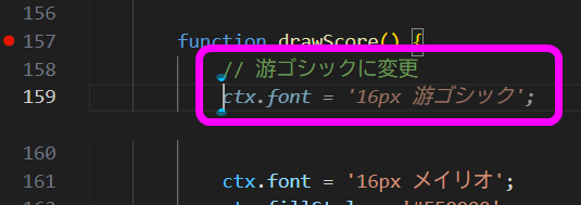 ctx.font = '16px メイリオ';を「游ゴシック」に変更したい場合は、